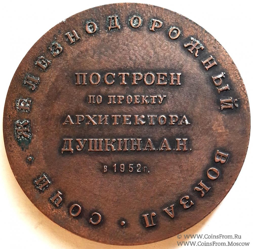 Памятная настольная медаль Советские железные дороги. Железнодорожный вокзал Сочи Алюминий. Покрытие. Диаметр 65 мм.