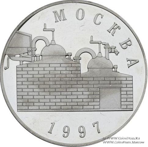 Настольная медаль «Юбилей российской водки. 1997 г.» Серебро, 34,79 гр. Диаметр 38 мм. Клейма на оборотной стороне: «Знак Московского монетного двора, обозначение металла и проба «Ag 900», вес «1 OZ». Состояние PROOF.