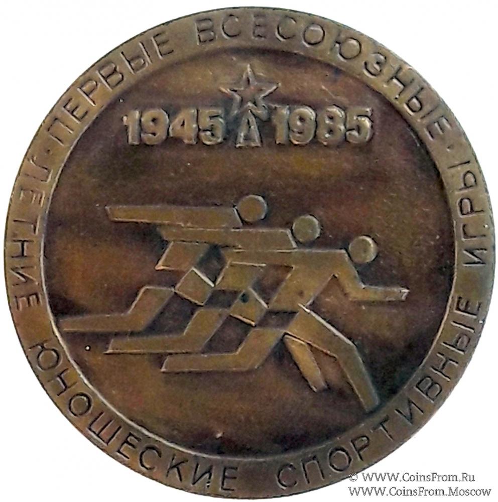 Памятная настольная медаль Первые всесоюзные летние юношеские спортивные игры. 40-летию победы посвящаются. 1945-1985.