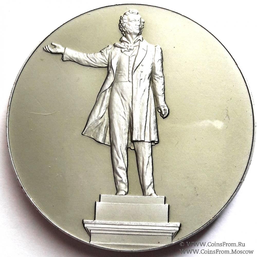 Памятная настольная медаль "Памятник Пушкину. ЛМД". Ленинград. ЛМД Алюминий, покрытие. Диаметр 53 мм. Толщина 4 мм. Вес 22,52 г.
