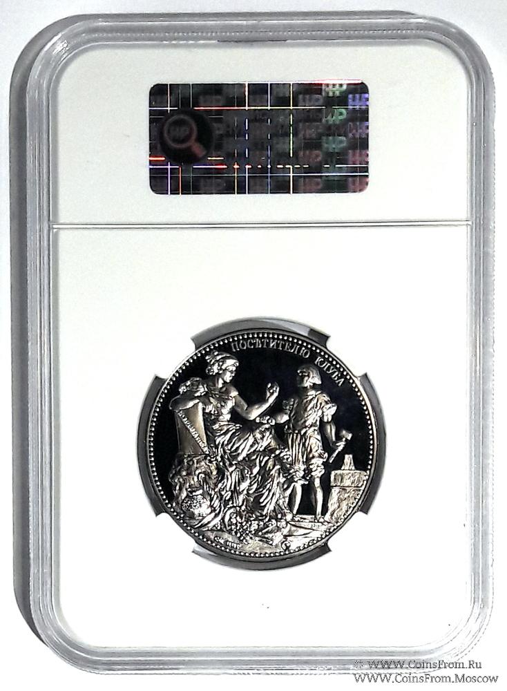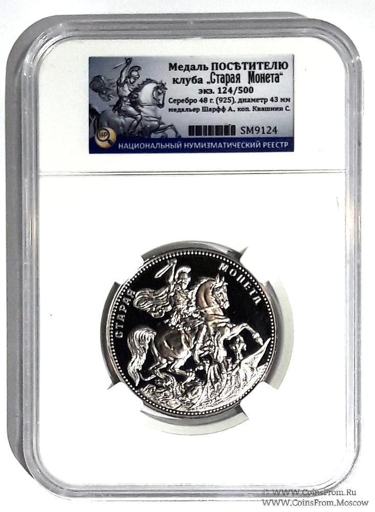 Тираж 500 экз., включая пробные, рабочие экземпляры, оттиски штемпелей в разных металлах. Этими же штемпелями было отчеканено 10 медалей в золоте, вес 85,6 г., 916 пробы. Легенды на медали: ПОСѢТИТЕЛЮ КЛУБА / СТАРАЯ МОНЕТА, шрифт текста "ПОСѢТИТЕЛЮ КЛУБА". Буквы СМ ННР в нижней части медали обозначают партнеров по совместному проекту выпуска.
