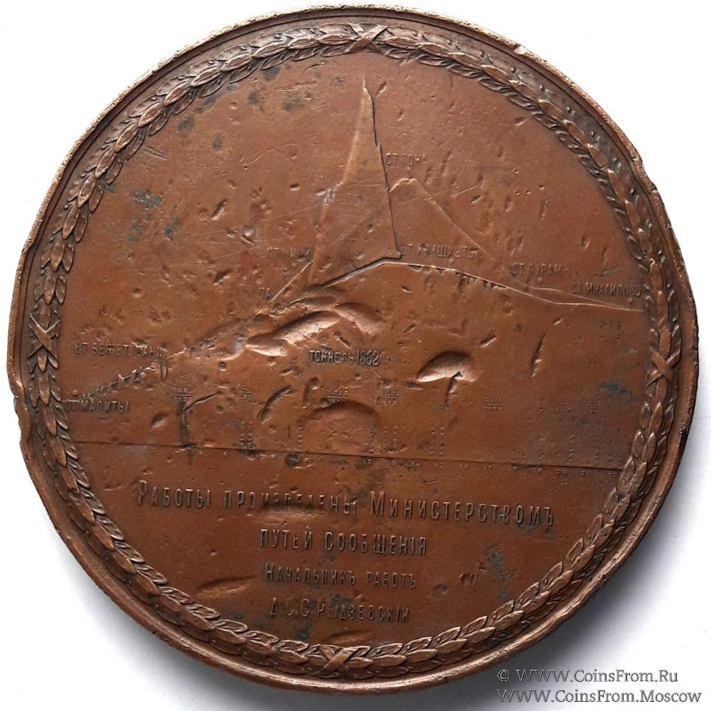 Настольная медаль “В память открытия Сурамского тоннеля. 1890 г. “ Л.ст.: Медь, 349,72 гр. Диаметр 97 мм. Смирнов№985, Diakov#1046.1(R0). Редкая.