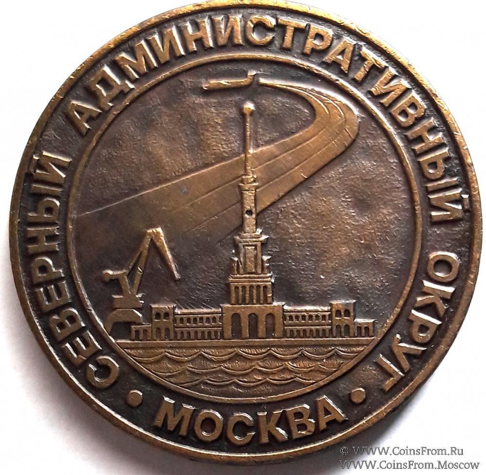 Памятная настольная медаль Северный административный округ г. Москва Томпак. Покрытие. Диаметр 55 мм.
