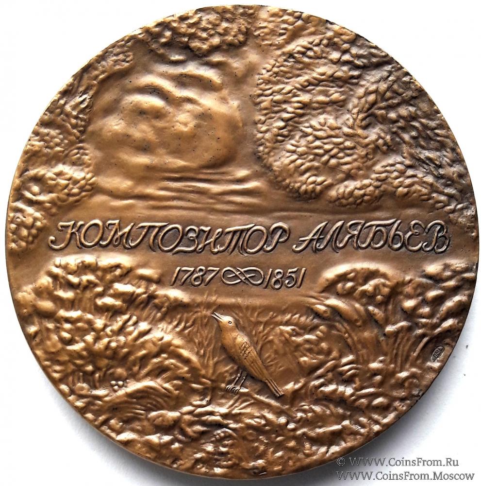 Памятная настольная медаль "125 лет со дня смерти А.А.Алябьева". 1976 г. ЛМД