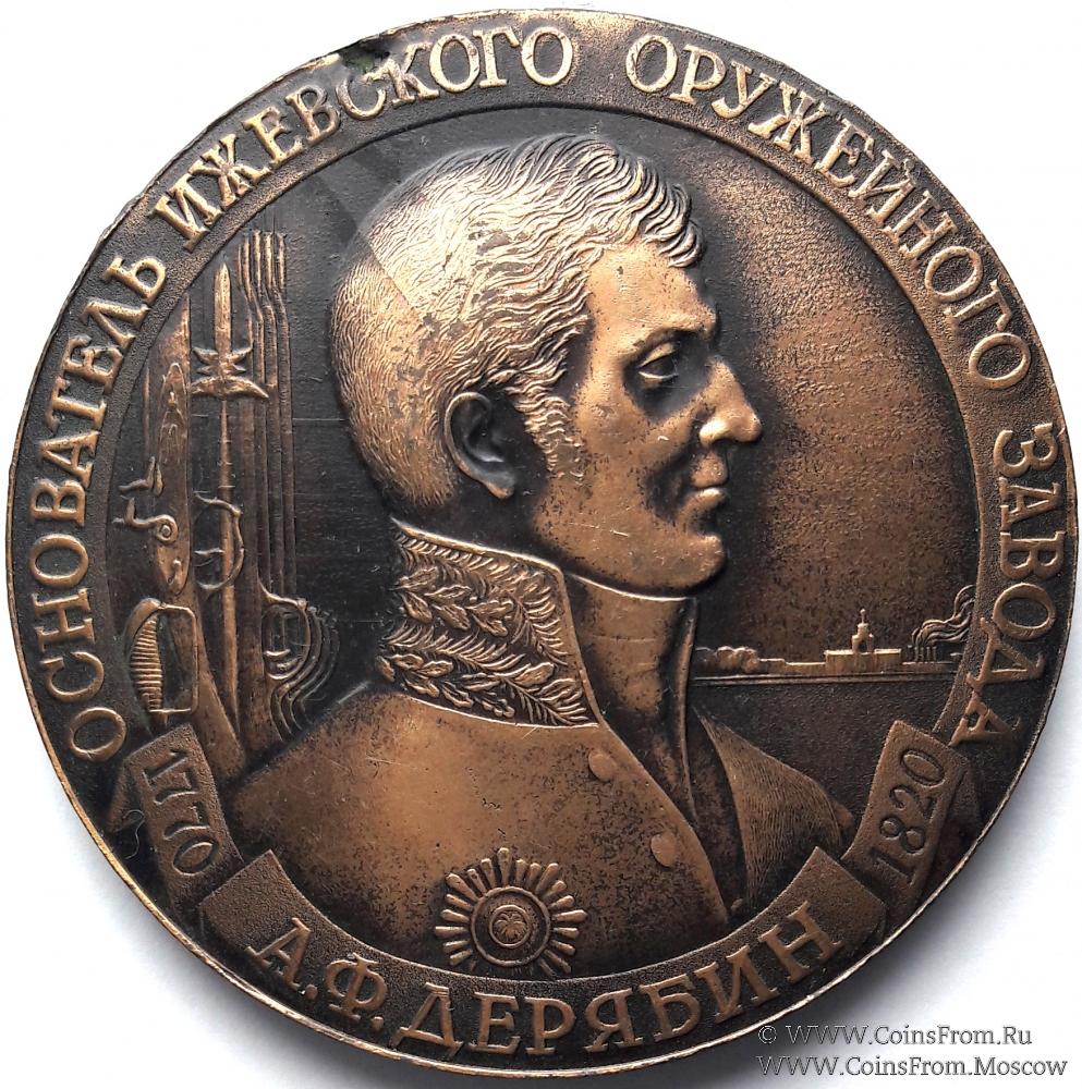 Памятная настольная медаль "175 лет со дня рождения Дерябина А.Ф. Основателя Ижевского оружейного завода". 1982 г.