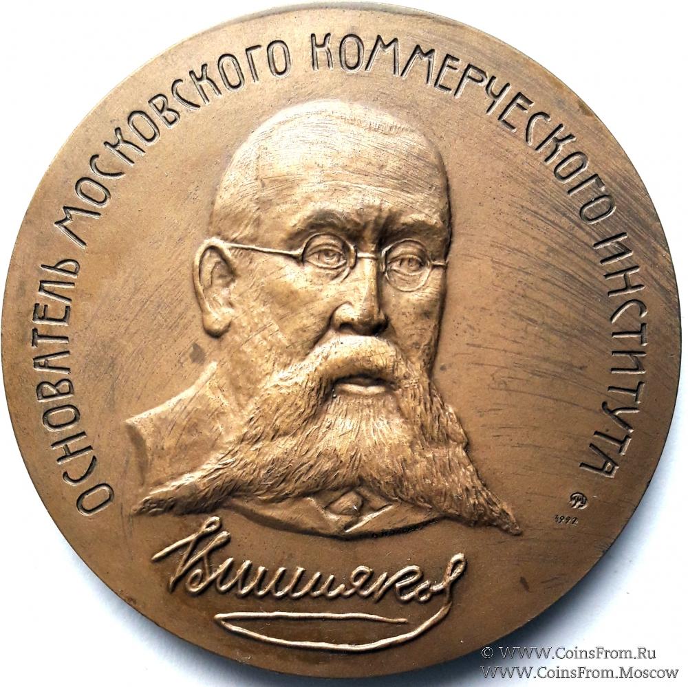 Памятная настольная медаль "Основатель московского коммерческого института (РЭА им. Плеханова А. Вишняков)". 1992 г. ММД
