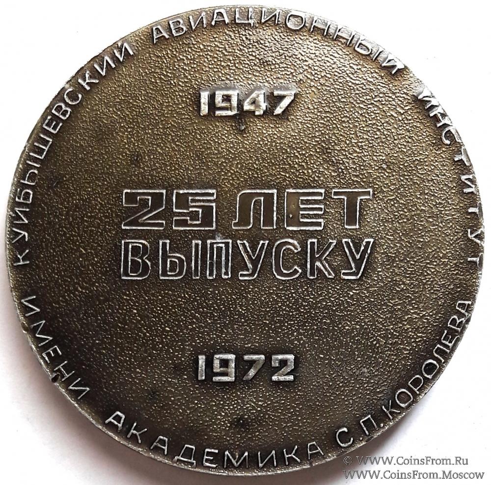 Памятная настольная медаль 30 лет Куйбышевскому авиационному институту им. академика С.П. Королёва. 25 лет выпуску. 1947 - 1972