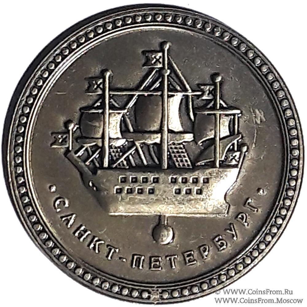 Музейный жетон Петропавловская крепость. Санкт Петербург. 2018 г. Немагнитный сплав. Окраска "под латунь". Диаметр 34,5мм.