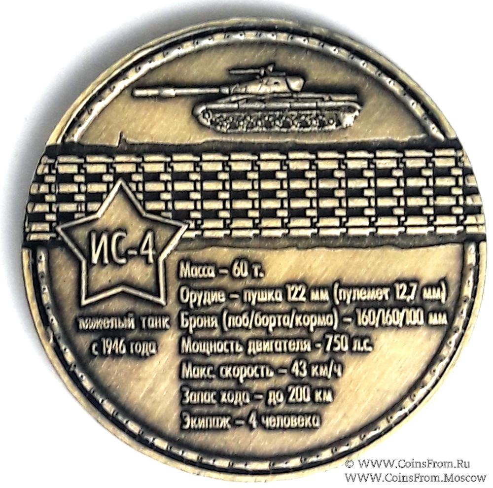 Музейный жетон Тяжёлый танк ИС 4 . Санкт Петербург. 2018 г. Немагнитный сплав. Окраска "под латунь". Диаметр 34,5мм.