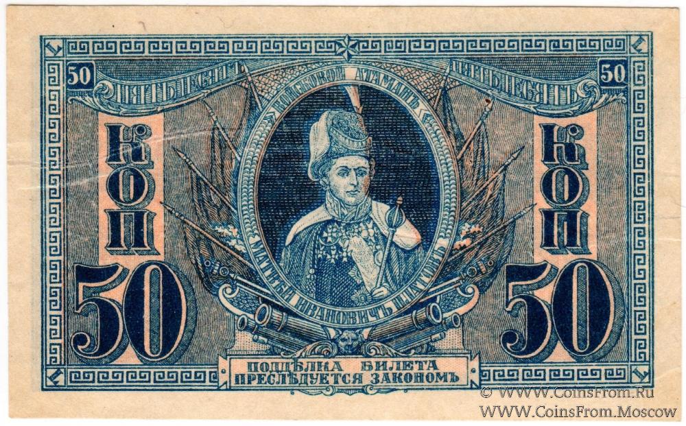 Билет 1918 г. Синий оттенок реверса. Без желтых штрихов на полях. Бумага жёлтая. Печать ЭИДЗ, Ростов на Дону.