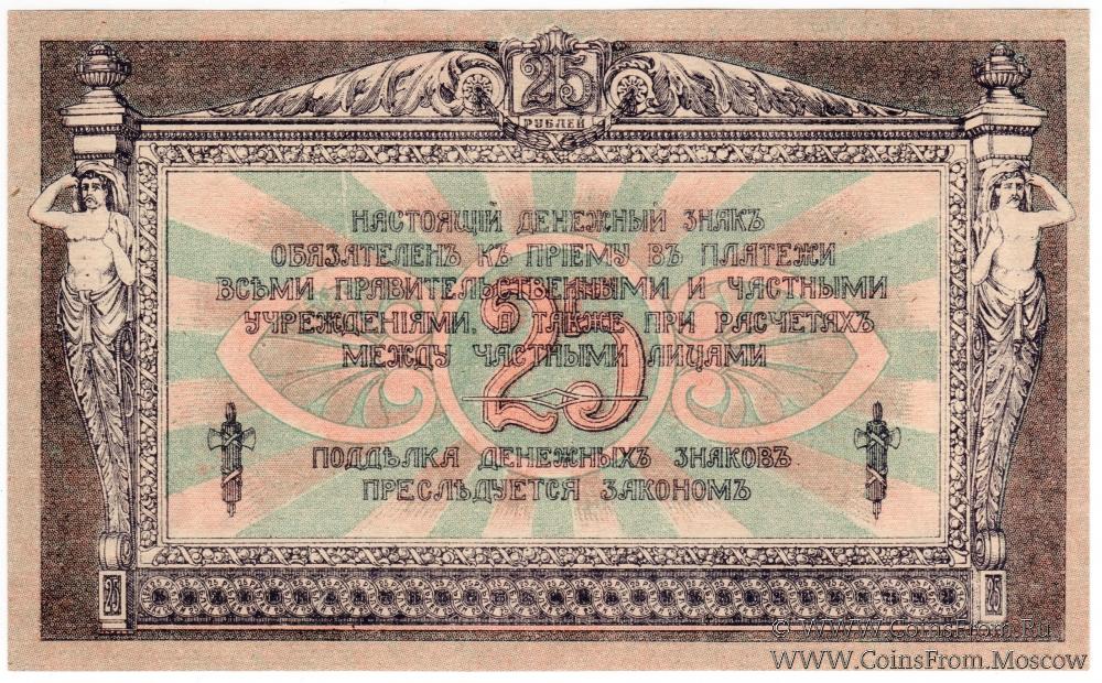 Денежный знак 1918 г. Выпуск 1919 г. (с серии АИ-35 и далее). Водяной знак - "ГБ". Печать ЭИДЗ, Ростов на Дону.