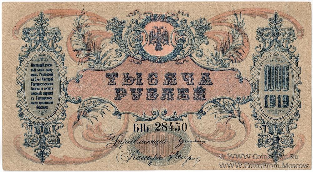 Денежный знак 1919 г. БРАК нумератора: опечатка в серии (БIЪ). Серия Б. Номер 5-значный, текущий (без тире). Водяной знак - "ГБ". Ростов-на-Дону.