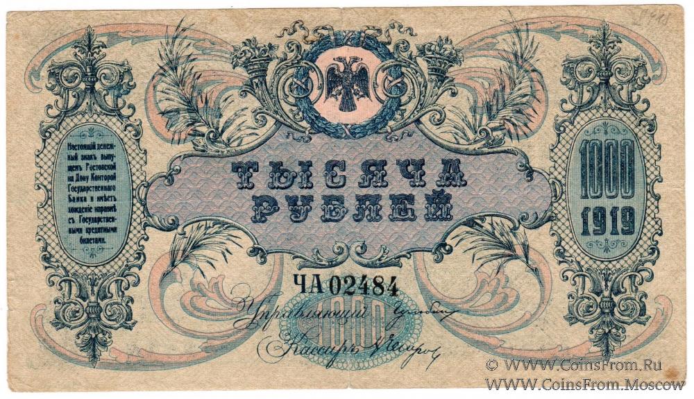 Денежный знак 1919 г. Выпуск 1919 г. (с серии ЧА). Без водяного знака. Номер 5-значный, текущий (без тире). Печать 4-я ЭЗГБ ВСЮР, Симферополь.