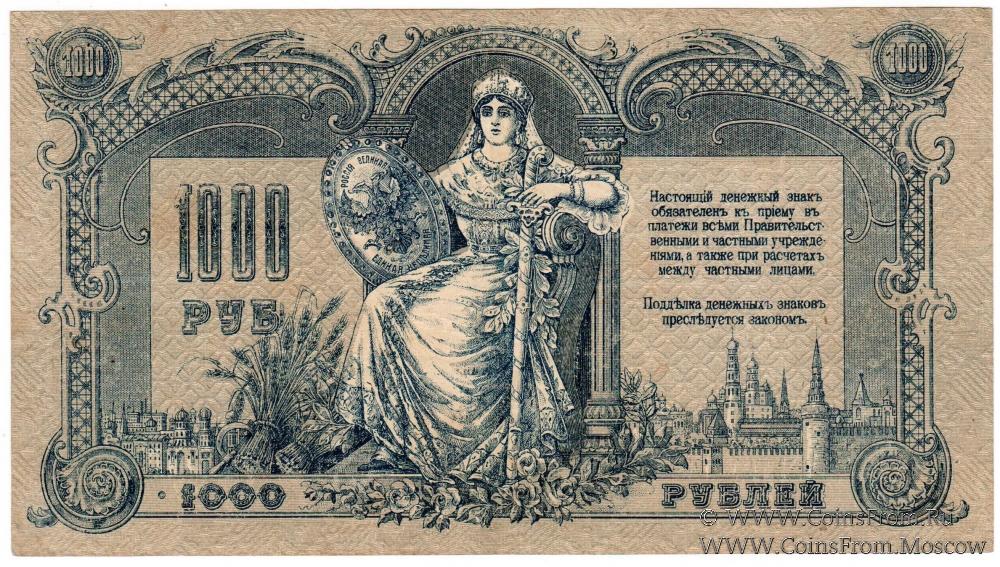 Денежные знаки образца 1919 г. (100, 1.000 и 5000 рублей)