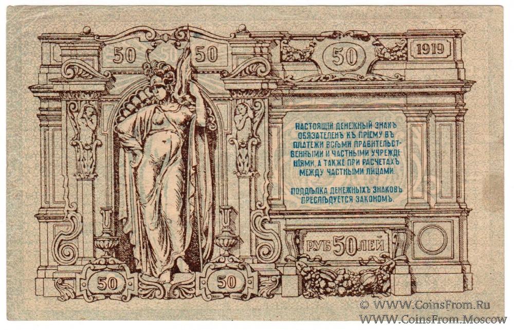 Денежный знак 1919 г. Водяной знак: "ГБ".