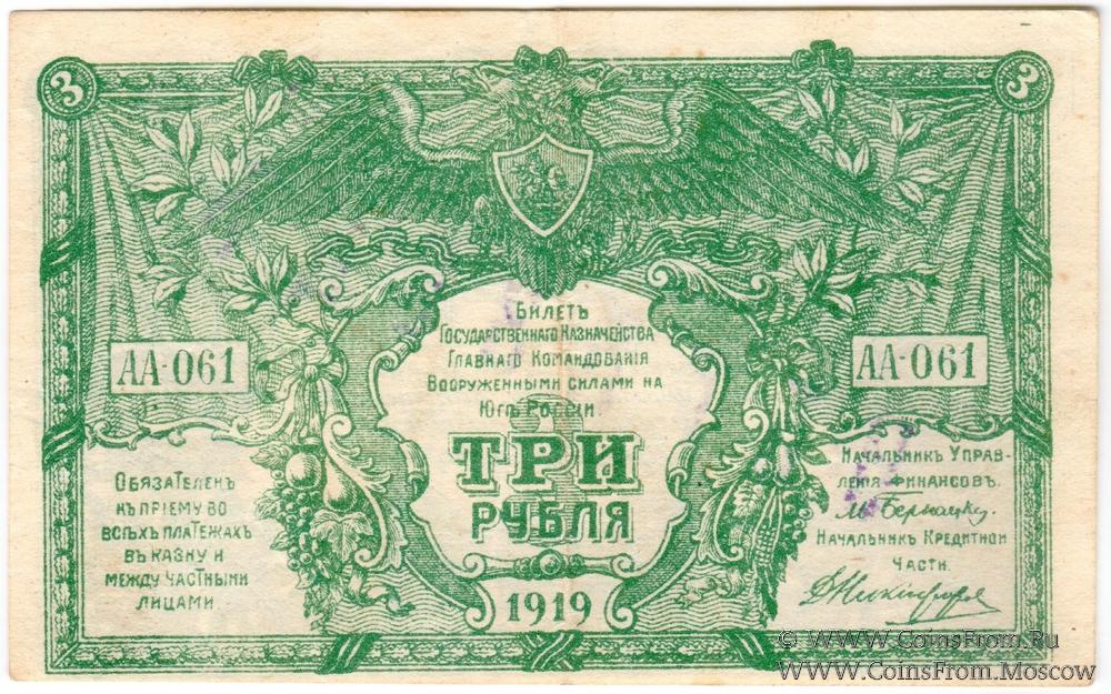 Билет Государственного Казначейства ГК ВСЮР 1919 г.