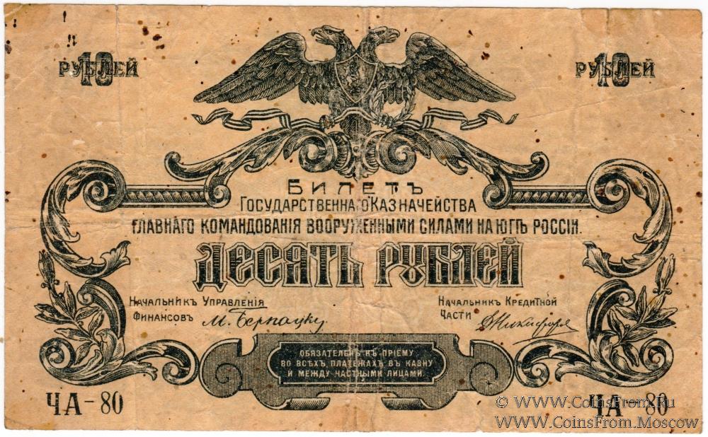 Билет Государственного Казначейства ГК ВСЮР 1919 г.