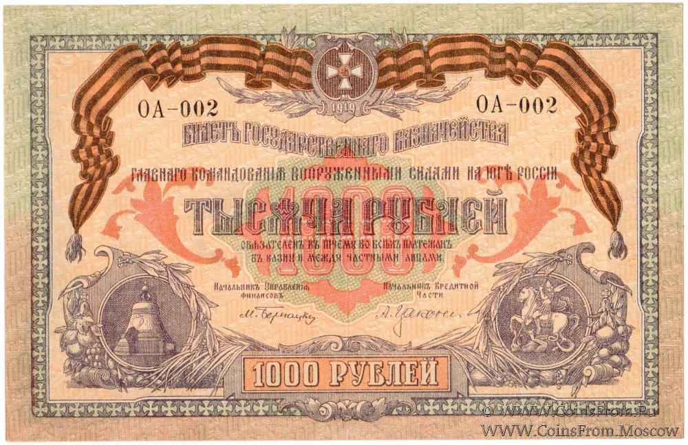 Билет Государственного Казначейства ГК ВСЮР 1919 г.