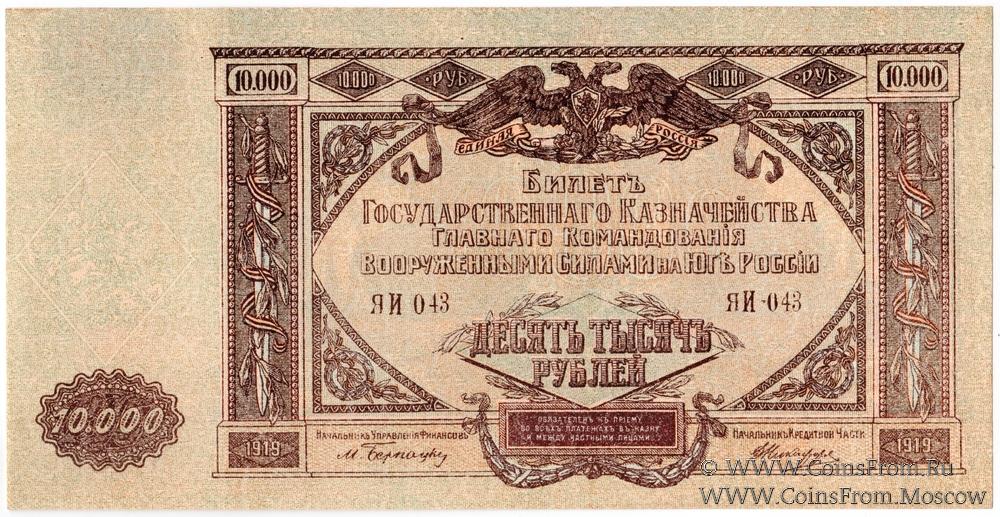Билет Государственного Казначейства ГК ВСЮР 1919 г.