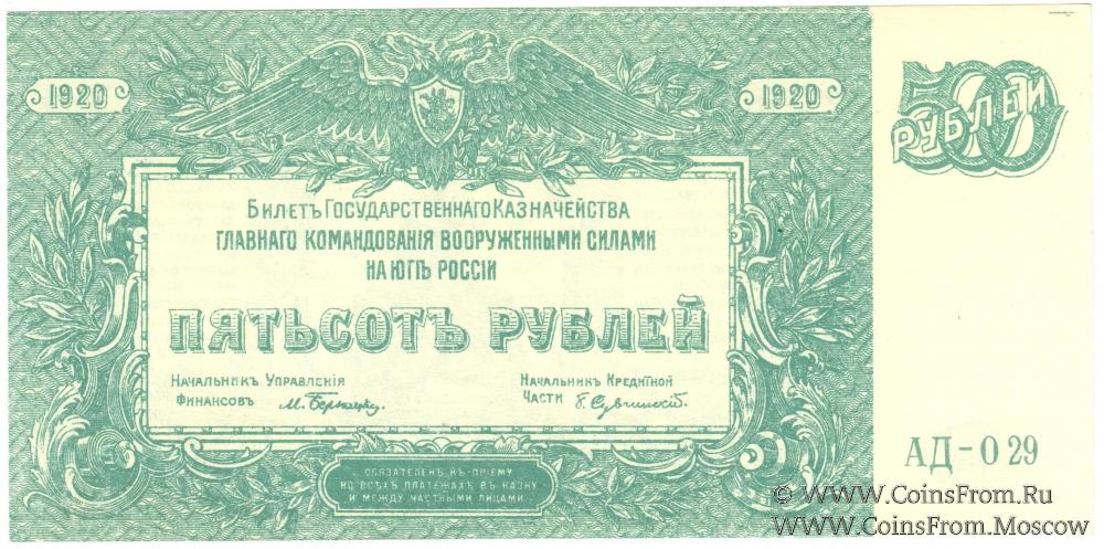 Билет Государственного Казначейства ГК ВСЮР 1920 г.