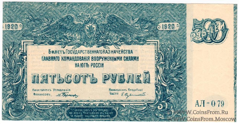 Билет Государственного Казначейства ГК ВСЮР 1920 г.