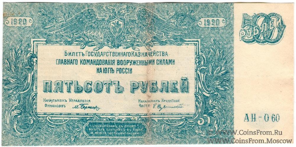 Билет Государственного Казначейства ГК ВСЮР 1920 г.