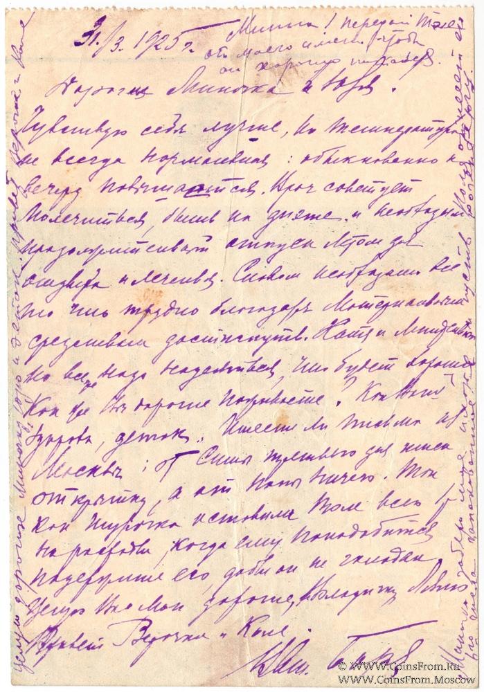 БРАК: только аверс, неразрезанная сцепка (из 2-х не целых банкнот); белое поле справа (увеличенное). Вторичное использование: на реверсе письмо-записка от 31.03.1925 г.