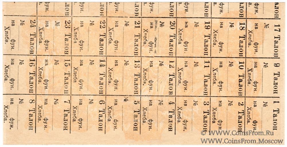 БРАК: на аверсе только фоновые сетки. Вторичное использование: на реверсе талоны на хлеб. Водяной знак - мозайка.