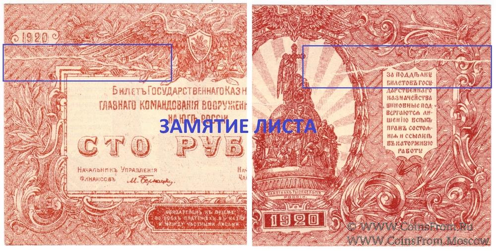 Билет Государственного Казначейства ГК ВСЮР 1920 г.