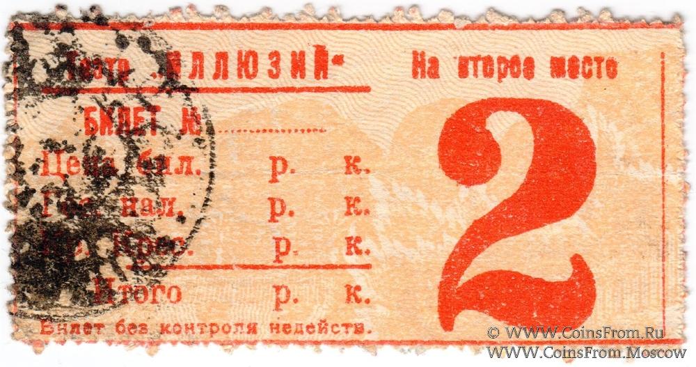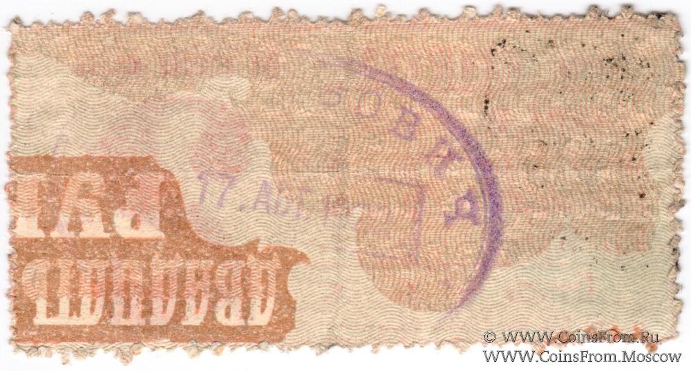 БРАК: на аверсе и реверсе только фоновые сетки. Вторичное использование: на реверсе билет театра Иллюзий (овальная печать с датой 17.08.1922). Водяной знак - мозайка.