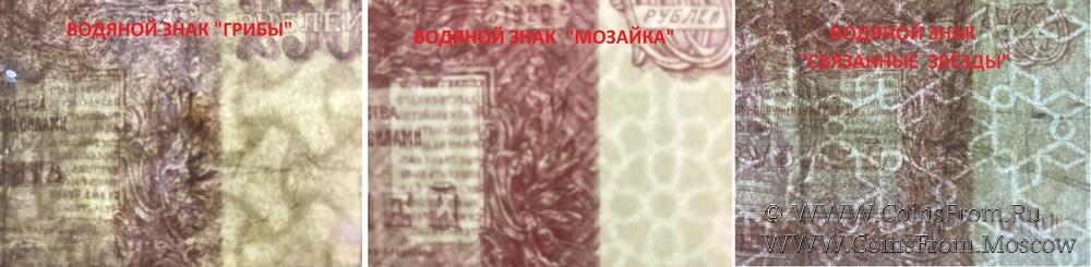 Водяные знаки Билетов Государственного Казначейства ГК ВСЮР 1920 г.: "грибы", "мозайка", "связанные звёзды".