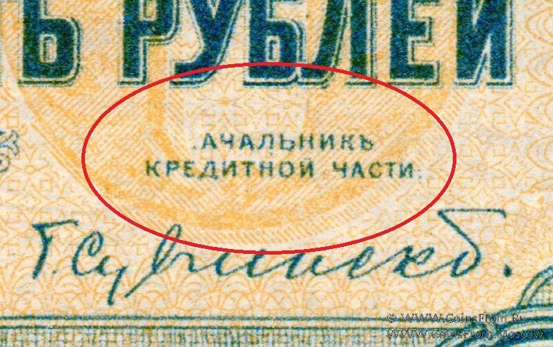 Казначейский знак 1919 (1920) г. Не выпущены. БРАК: надпись на аверсе с ошибкой: "...ачальникъ кредитной части...". Бумага белая.