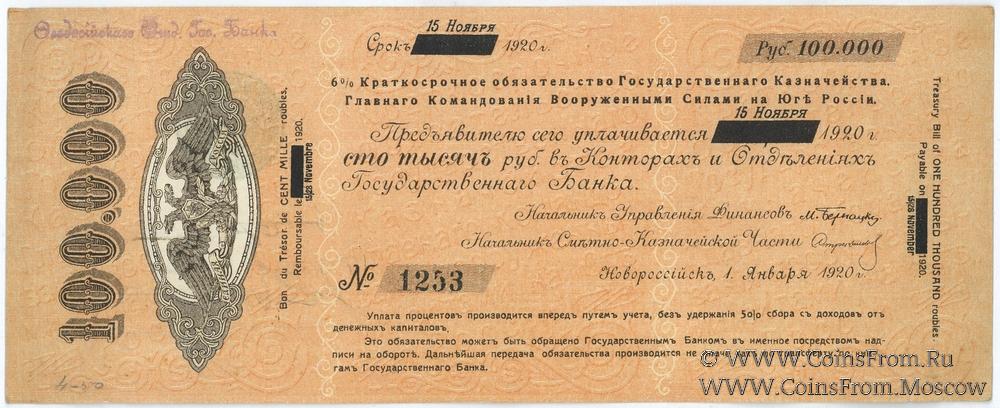 6% Краткосрочные обязательства Государственного Казначейства 1920 г.