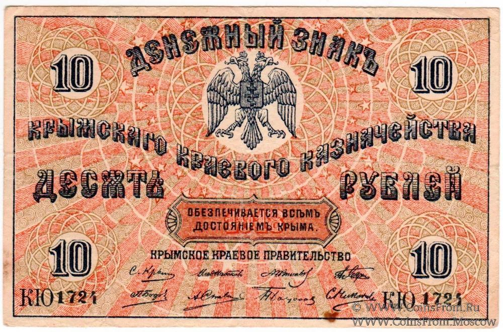 Денежный знак 1918 г. В серии две литеры. Номер на аверсе. Крымское Краевое Казначейство.