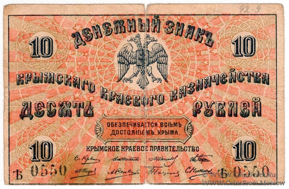 Денежный знак 1918 г. В серии одна литера. Номер на аверсе. Крымское Краевое Казначейство.