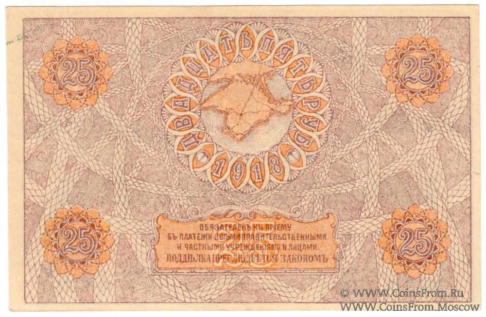 Денежный знак 1918 г. В серии одна литера 3 мм. Номер 3 мм. Крымское Краевое Казначейство.