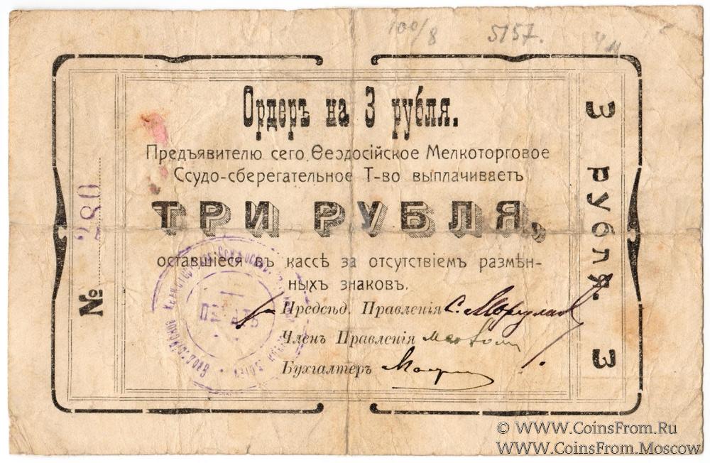 Ордер на ... 1918 г. Рамка с вырезами. Феодосийское Мелкоторговое Ссудо-Сберегательное Товарищество.