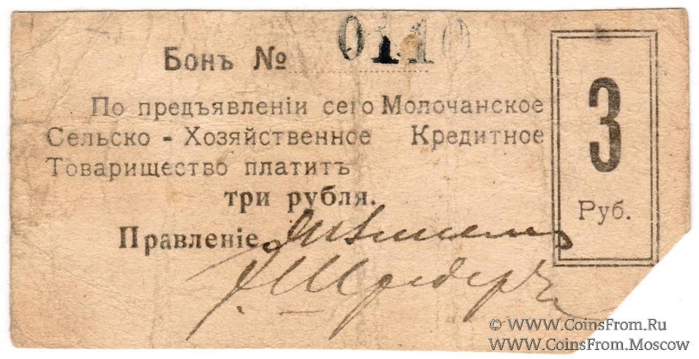 3 рубля 1918 г. (Молочанск)