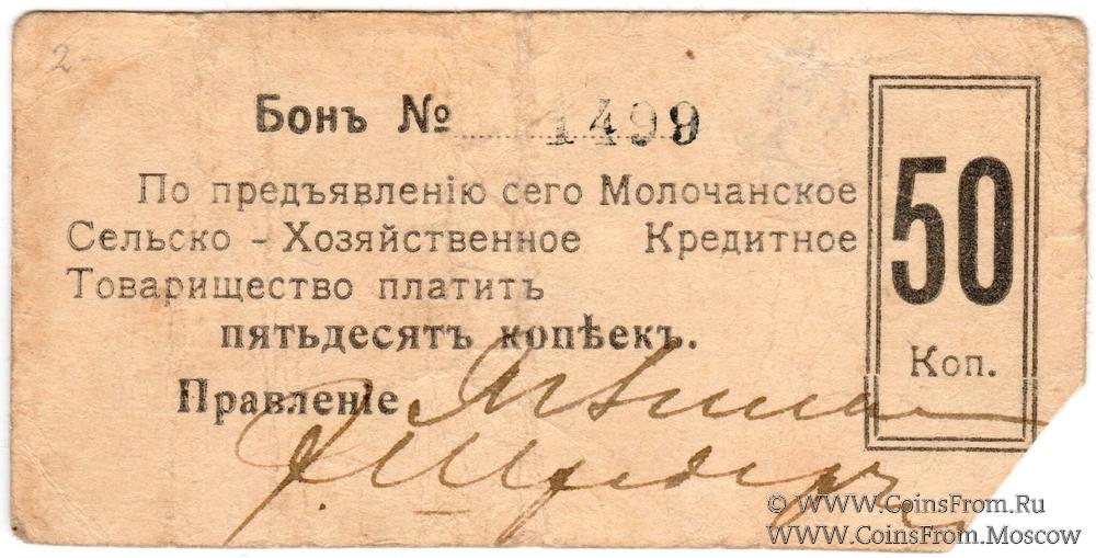 Бон 1918 г. Номер 4-значный 3,5 мм. Молочанское Сельско-Хозяйственное Кредитное Товарищество.