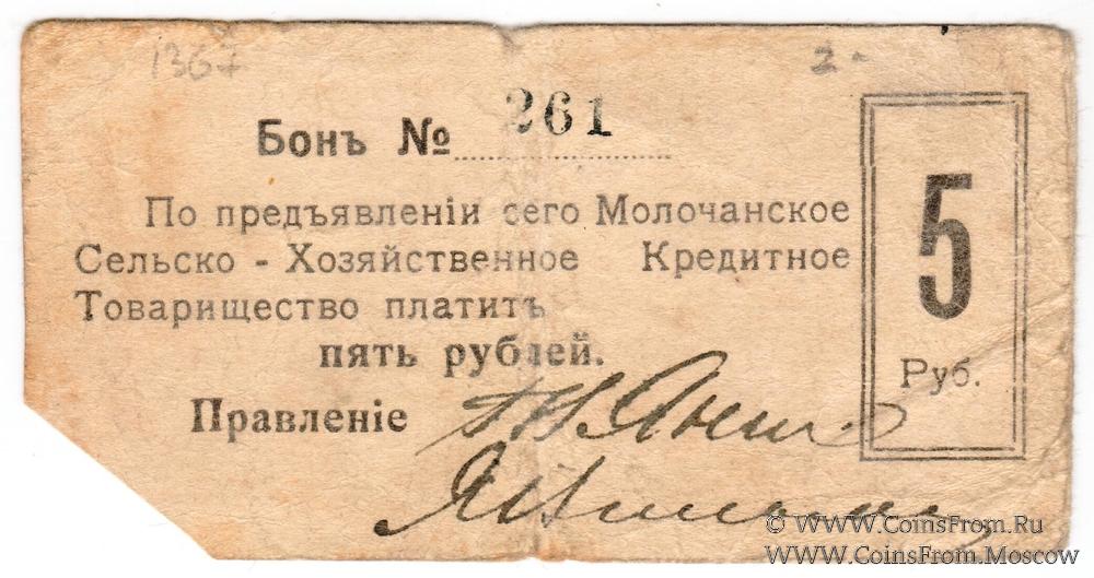 Бон 1918 г. Номер 3-значный 3,5 мм. Молочанское Сельско-Хозяйственное Кредитное Товарищество.