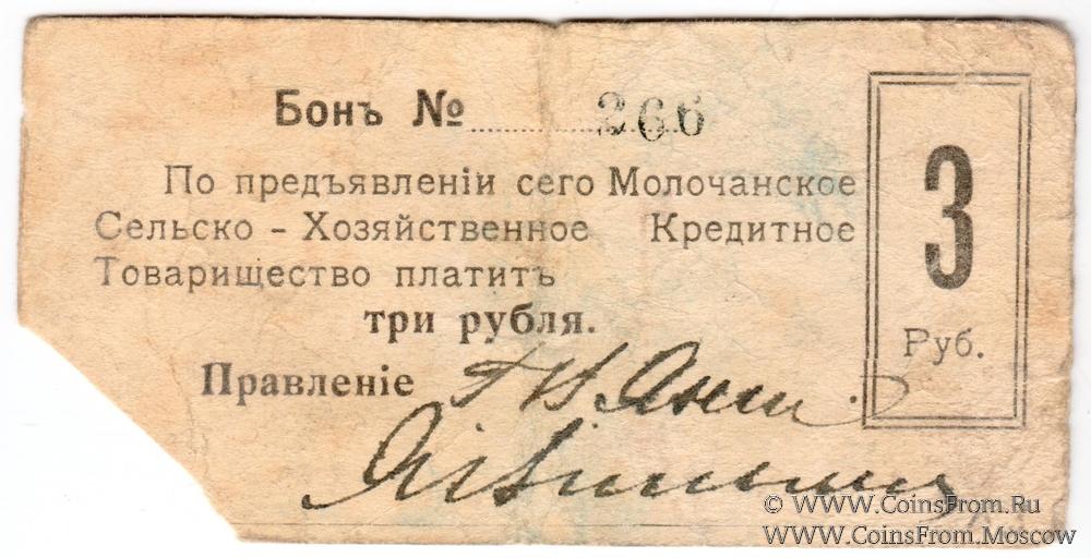 Бон 1918 г. Номер 3-значный 3,5 мм. Молочанское Сельско-Хозяйственное Кредитное Товарищество.