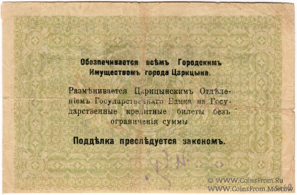 Временный Кредитный Билет без даты (1918 г.). Номер крупный (7 мм). Царицынское Городское Самоуправление.