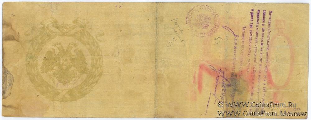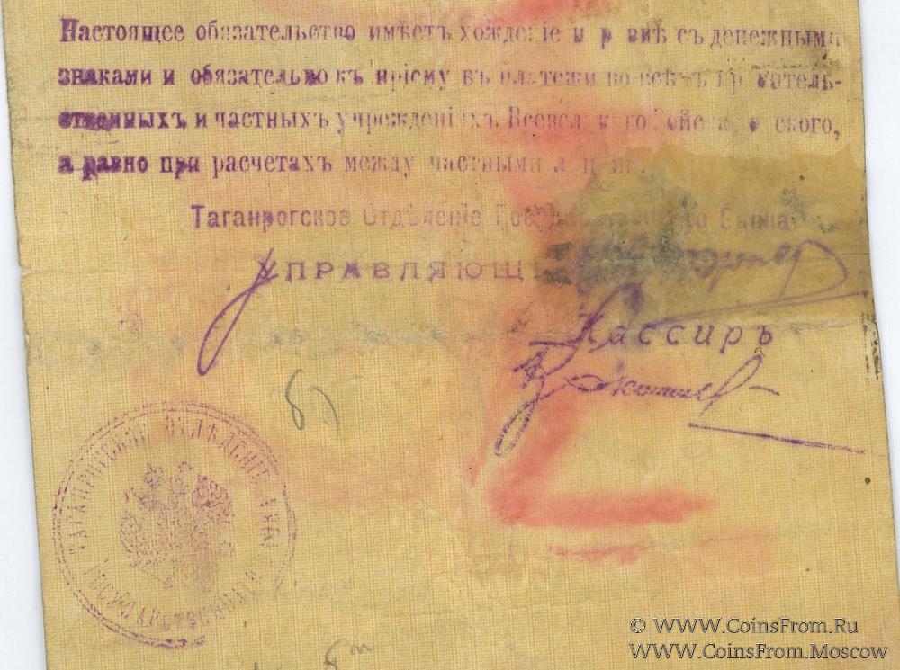 Печать круглая: Двуглавый орел (по центру) / "Таганрогское Отдъленiе Государственнаго Банка" (по кругу)