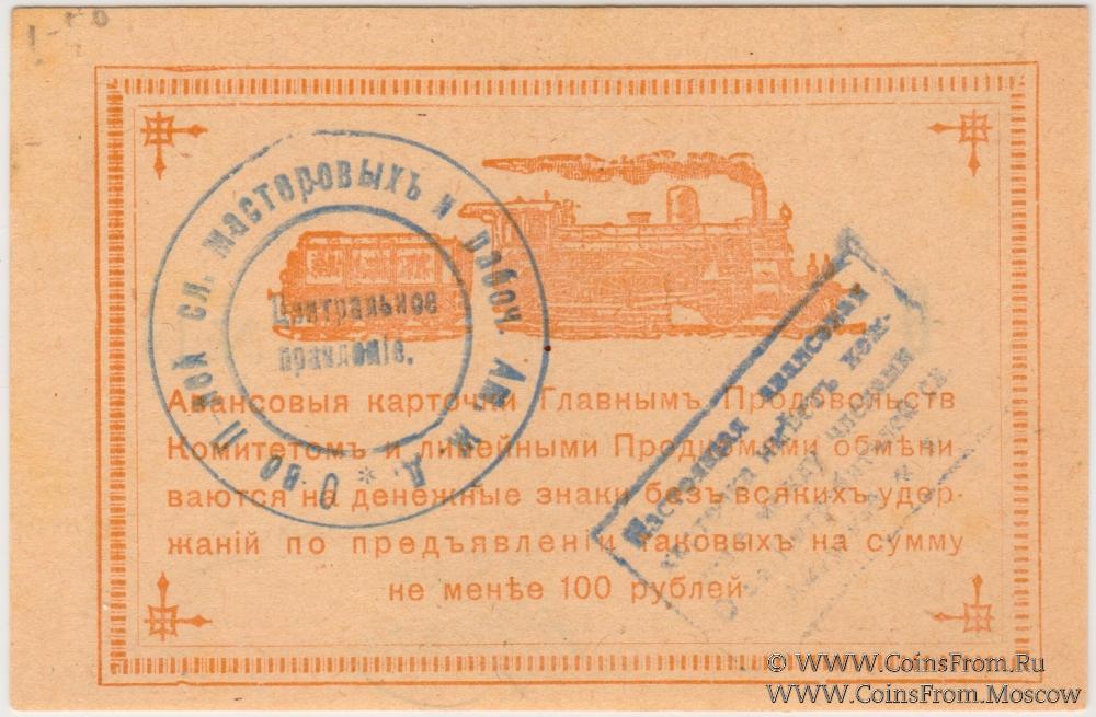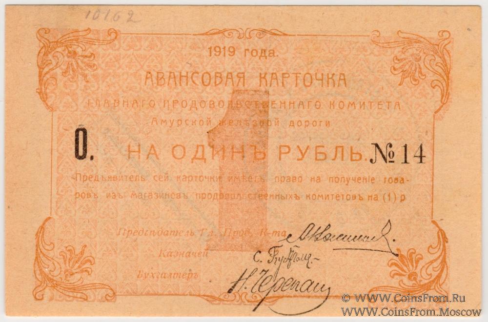 Авансовая карточка. Серия О. Главный продовольственный комитет Амурской Железной Дороги.