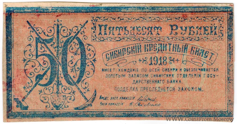 Сибирский кредитный билет 1918 г. БРАК: реверс покрыт краской для применения в переплетном деле.
