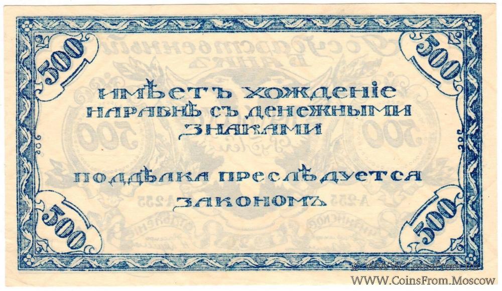 Временные денежные знаки (боны 100 и 500 рублей) 1920 г.