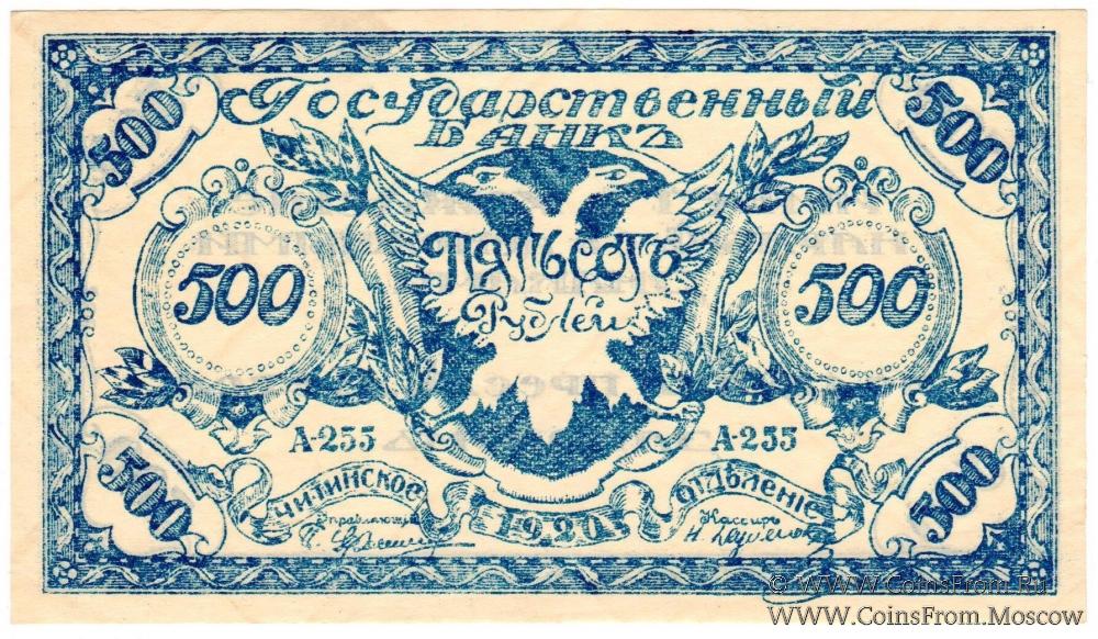 Бон Государственного банка 1920 г. Рисунок синий. Серия А-255. Читинское Отделение Государственного Банка.