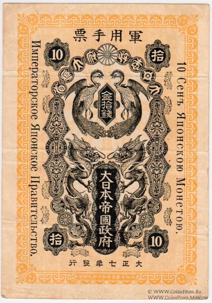 Выпуск Японией военных иен в Сибири и Дальнем Востоке для нужд японской армии. 1918 г. Императорское Японское Правительство.