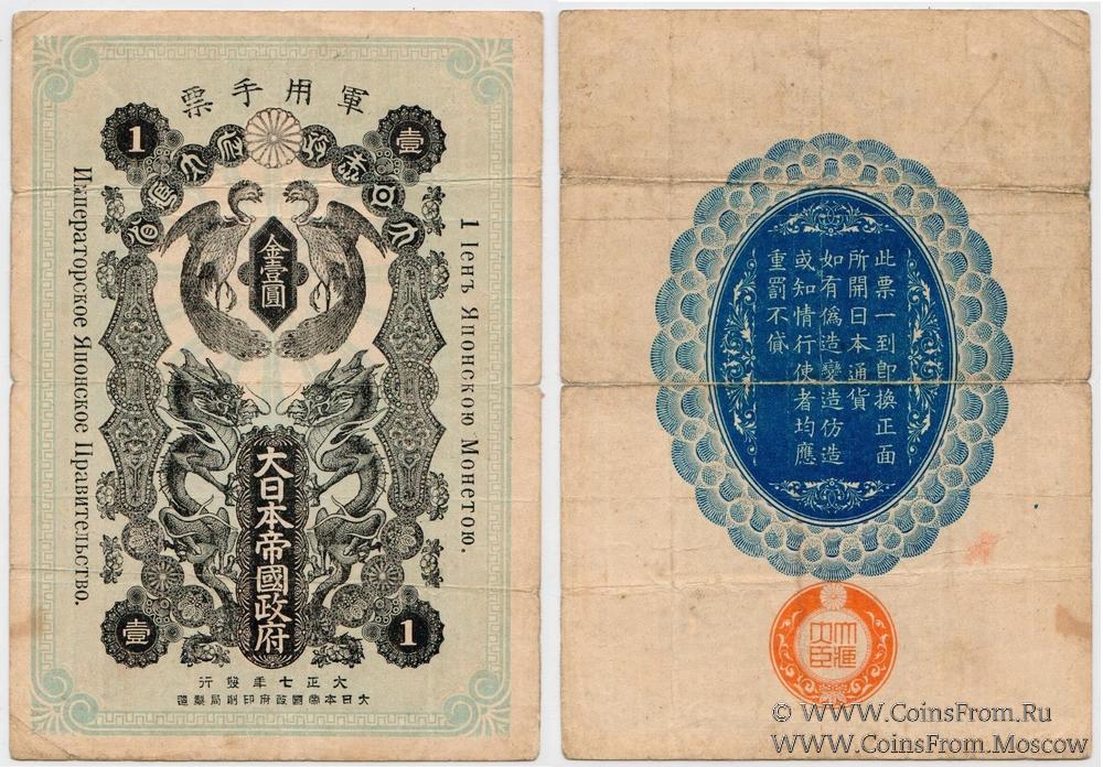 Выпуск Японией военных иен в Сибири и Дальнем Востоке для нужд японской армии. 1918 г. Императорское Японское Правительство.