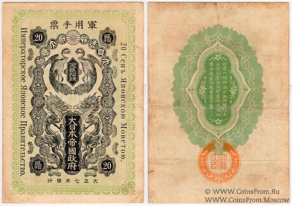 Выпуск Японией военных иен в Сибири и Дальнем Востоке для нужд японской армии. 1918 г. Императорское Японское Правительство.